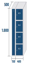 4 portes : - Profondeur : 500 mm - Hauteur : 1800 mm - Largeur : 450 mm ou 550 mm