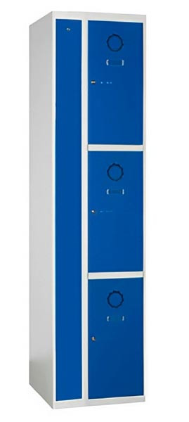 Réf. TC : 656217252Vestiaire métallique 3 cases avec prises électriques et USB 3 1800 x 550 x 500 Serrures de cylindre cromé avec deux clés