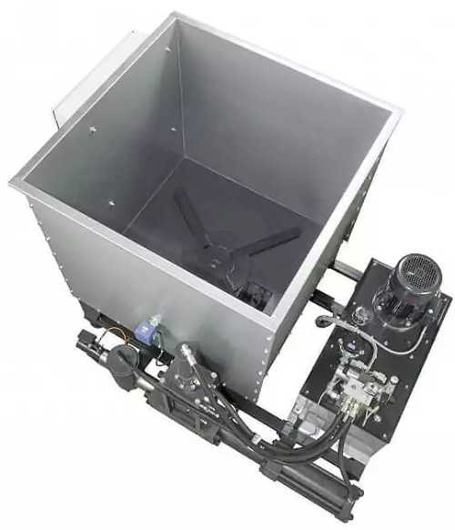 Grâce à la trémie équipée d'un agitateur et d'une vis sans fin, la matière est alimentée de manière constante et homogène, entraînant tout risque de blocage ou de mauvaise alimentation.