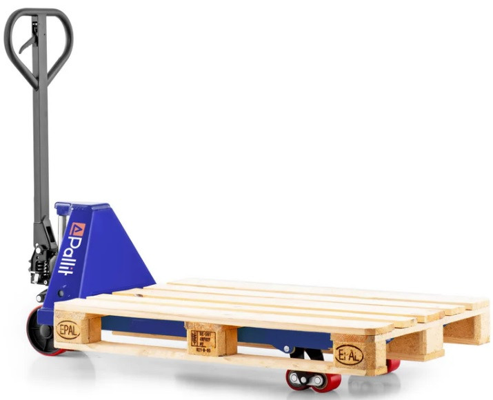 grâce à sa poignée en caoutchouc, la transpalette permet de déplacer facilement les charges, offrant une utilisation ergonomique et confortable pour l'utilisateur