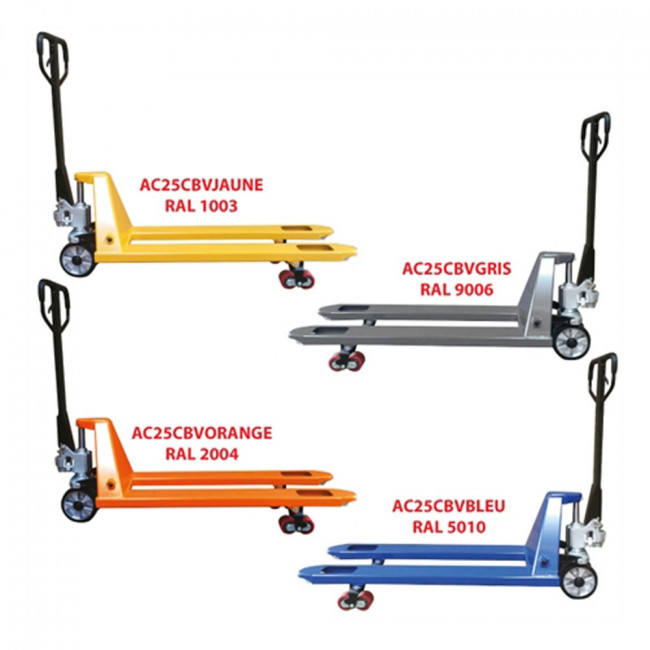- Largeur de fourches 540 mm, sauf pour le modèle AC25L disponible en 685 mm
