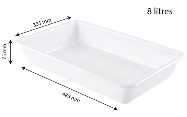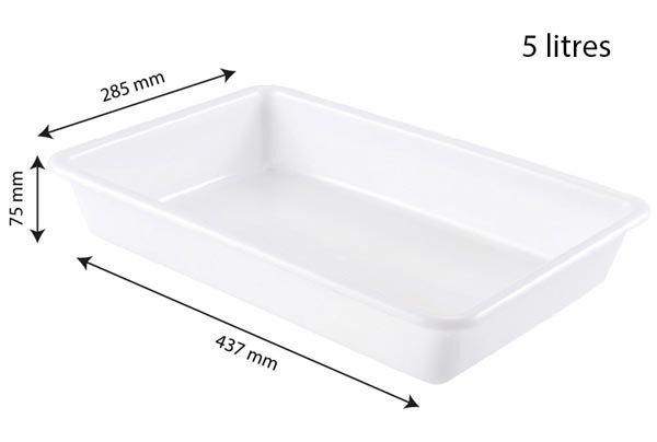 Bac alimentaire plat - 3 à 8 litres - blanc