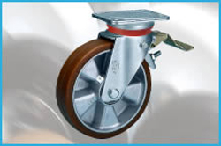 - ROULETTE PIVOTANTE AVEC FREIN DIA 125 CHARGE 250 KG MINI EN CAOUTCHOUC PLEIN SI POSSIBLE AVEC TIGE DE PREFERENCE / QUANTITE : 4