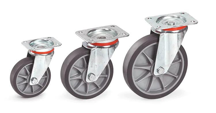 - Roue à bandage TPE (Élastomère thermoplastique) équipée de pare-fils, moyeu à roulement à billes de précision.
