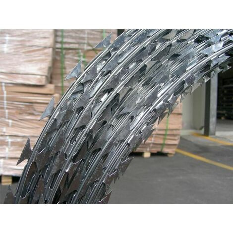 Fil barbelé concertina ronce appelé fil de fer barbelé américain est un rouleau défensif est produit dangereux du a sa coupure et ses lames tranchantes.