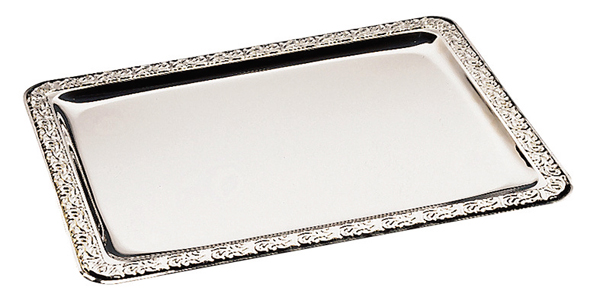 Plateau de service bord décoré, sans anses, 60 x 40 cm .