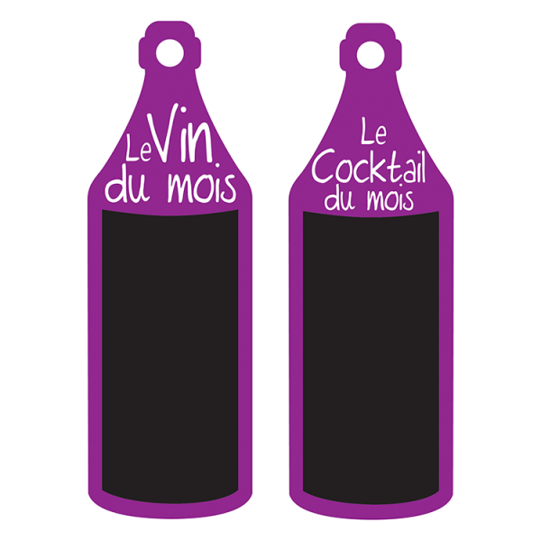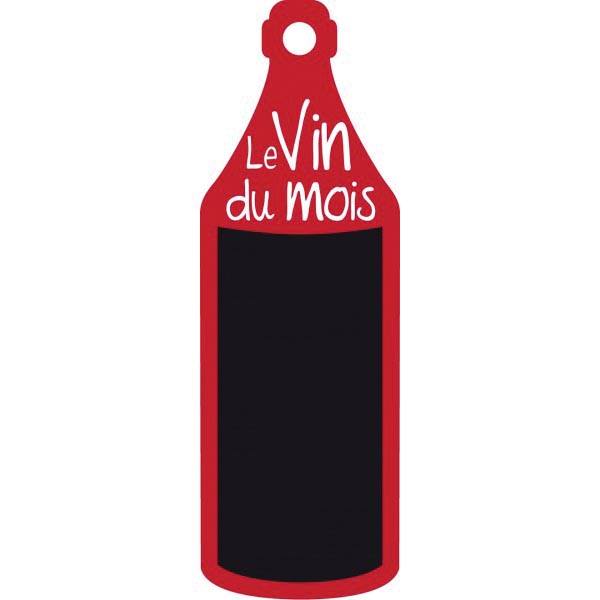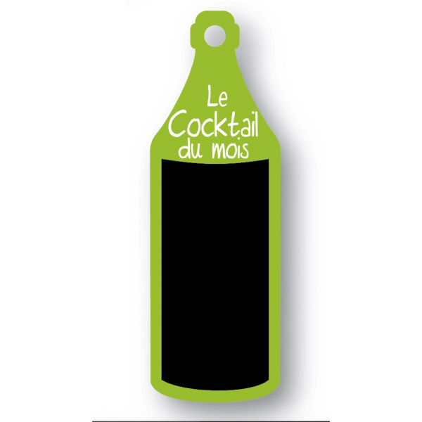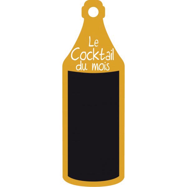L’ardoise est caractérisée par son design de forme « bouteille » avec un fond pour écriture en noir.