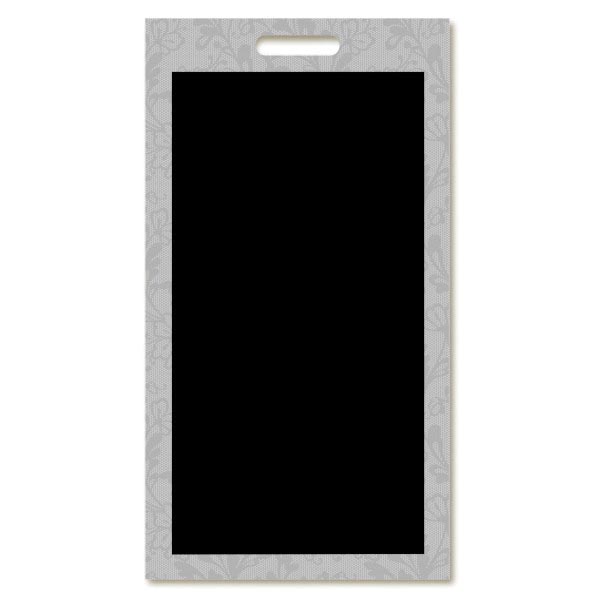 Cette ardoise menu recto/verso avec poignée dispose d'un décors du contour en transparence.