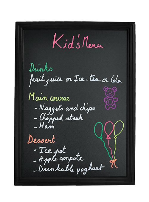 Avec son cadre en bois dur laqué et sa surface d’écriture double-face, elle s’adapte parfaitement aux restaurants, cafés, hôtels et bars qui souhaitent mettre en valeur leur communication visuelle.