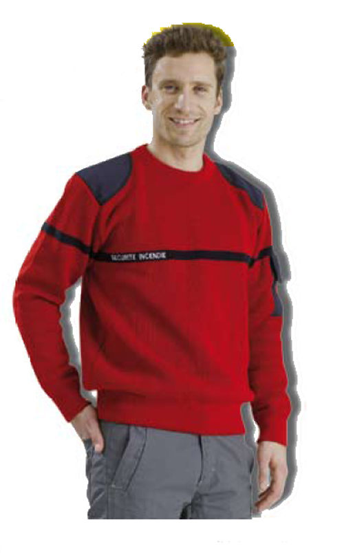 | Réf. TC :572776964 | Pull col rond sécurité incendie | L | rubis rayure marine | -