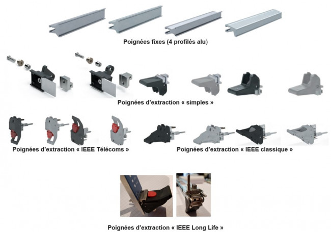 Ces faces avants sont à équiper des poignées, des inserts et vis ou boutons imperdables M2,5 sur la face avant ainsi que des éléments de fixation du CI sur la face arrière.