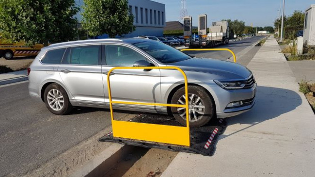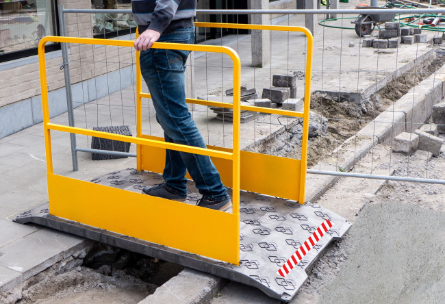 la hauteur du garde-corps est de 1,1m et est de couleur jaune pour une meilleure visibilité.
