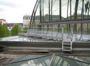 La passerelle sera équipée d’un garde corps amovible, conforme à la norme NF EN ISO14122-3, (garde-corps et rampes situés sur les toitures ou dans les locaux, passages et emplacements techniques réservés au personnel d’exploitation ou d’entretien).