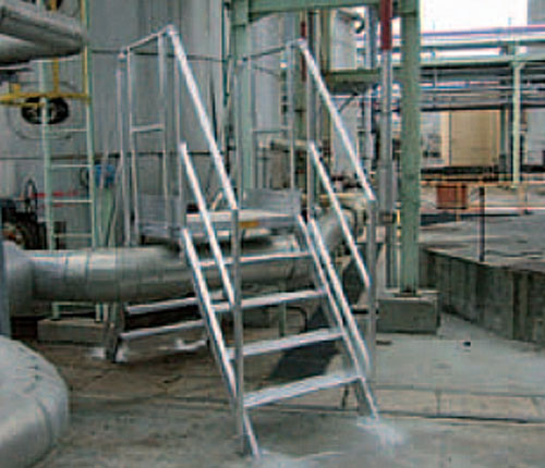 Cet équipement garantit un passage sûr au-dessus des tuyauteries industrielles tout en respectant les normes de sécurité en vigueur.