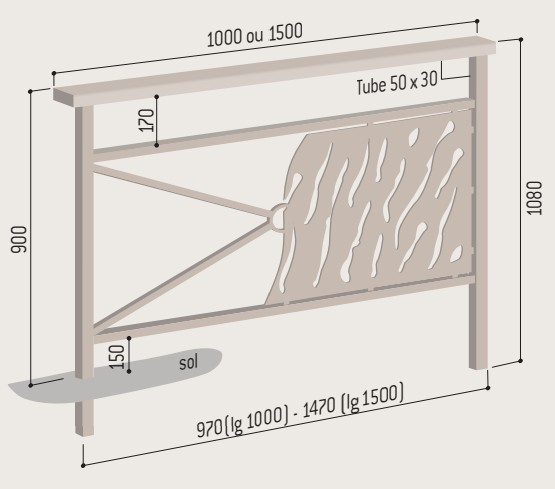 - Trois cadres : simple croix, tôle découpée épaisseur 3 mm ou à barreaux.