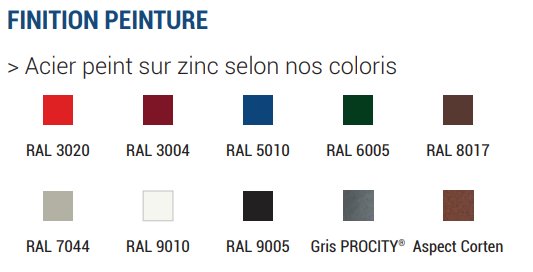 Notre gamme de finitions peinture sur zinc vous permet d'harmoniser parfaitement vos équipements avec l'identité visuelle de vos aménagements urbains. Disponible en 10 coloris incluant les RAL standards, l'aspect Corten et notre Gris PROCITY® exclusif.