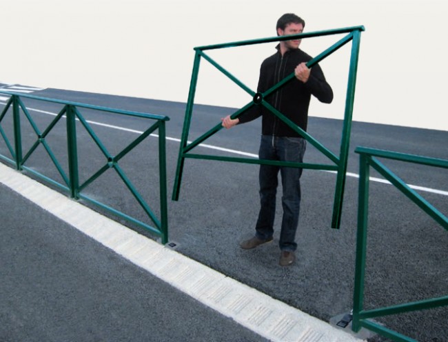 La barrière de protection est parfaitement stable lorsqu’elle est en place dans ses fourreaux grâce au système « Effet scellement ».