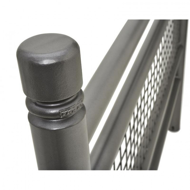 Longueur : 1572 mm Hauteur hors sol : 1000 mm Poteaux : tubes acier ø 76 mm. Finition : acier peint sur zinc Fixation : scellement direct