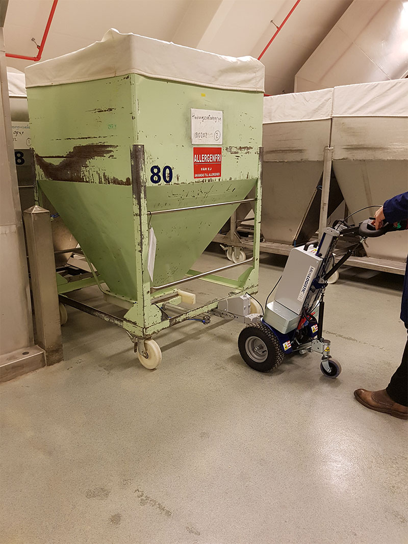 Ses deux batteries 33 A et son moteur à différentiel 400W lui permettent de déplacer jusqu’à 1200 kg sur plat. En cas d'utilisation intensive, une manipulation très simple permet le remplacement du jeu de batteries dont la charge n'est plus suffisante, par un jeu chargé.