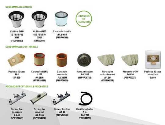 Grâce à un large éventail d'accessoires, ces aspirateurs s'adaptent à divers types de nettoyages, y compris les suceurs spécialisés pour liquides et poussières.