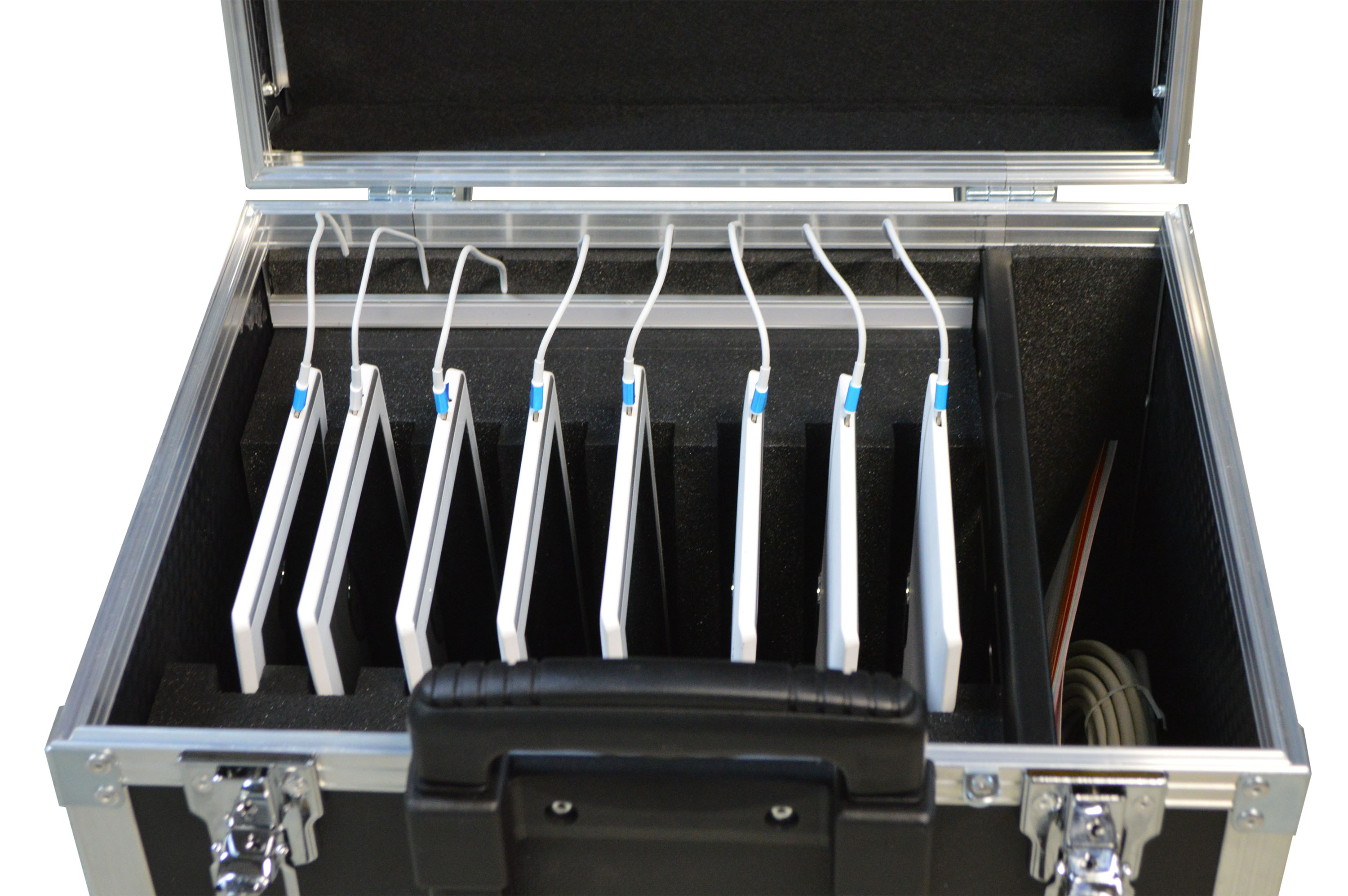 Notre valise multimédia 8 tablettes est un équipement complet pour ranger, protéger, transporter tout en rechargeant simultanément vos outils de travail.