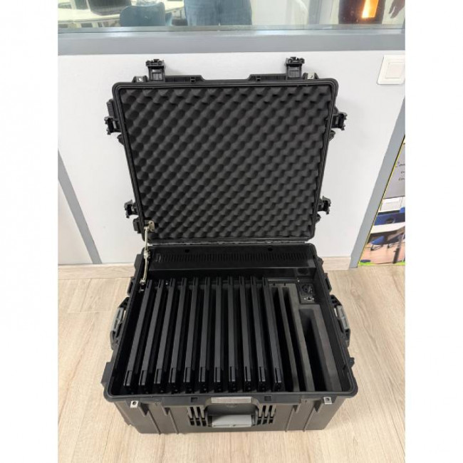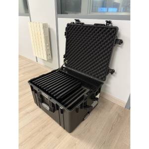 La valise multimédia permet de transporter et de recharger jusqu'à 13 ordinateurs portables de 16 pouces maximum.