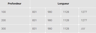 - Par juxtaposition on obtient toutes les profondeurs voulues en multiples de 100 mm