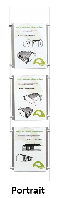 Le coffret est composé de deux câbles de 4 mètres chacun, de 3 ou 4 porte-affiches, de leurs pinces et du système d'accroche.