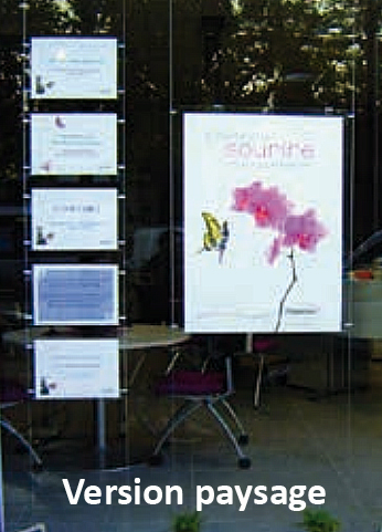 Les documents à présenter sont placés dans une feuille de PMMA pliée et verrouillée par 4 pinces en acier chromé.