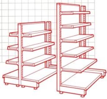 - 25 gondoles murales – hauteur 1900 – Largeur 1000 mm – profondeur 400 mm