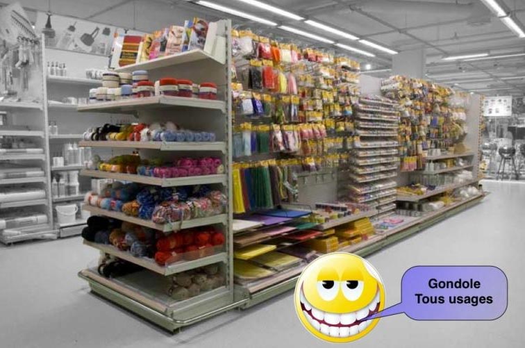 Nous souhaiterons habiller chacune de ces gondoles de 6 étagères.