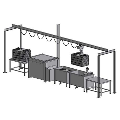 La marmite peut accueillir un panier à accrochage par palan, d'un volume de 350 kilos pour la cuisson de grandes quantités.