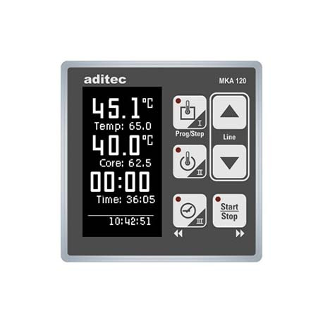 Elle dispose également d'une sonde à cœur et d'un automate 'Aditec' programmable qui contrôle le temps et la température de cuisson.