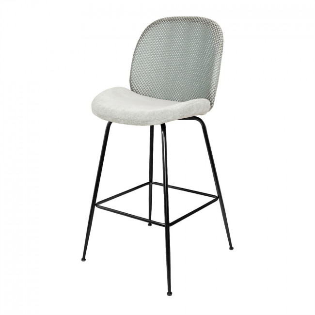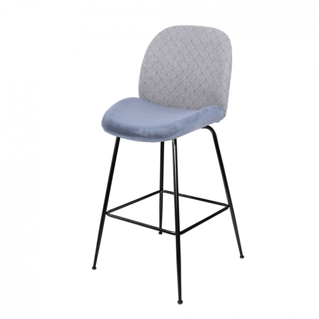 Tabourets de style contemporain avec structure en acier. Assise en tissu et dossier à motifs géométriques.