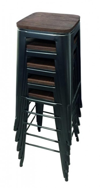 | Réf. TC :263231991 | Tabouret métallique industriel empilable | 75 | 43 x 43 | 31 x 31 | Noir mat avec assise bois chocolat | 4.5 | Lot de 5 | -