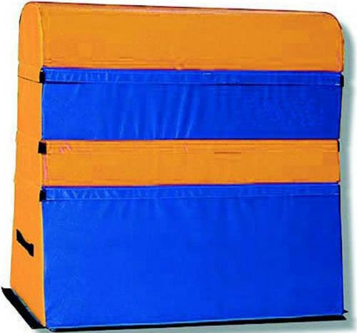 Ce cheval de saut en mousse est un équipement sportif utilisé pour les entraînements de gymnastique.