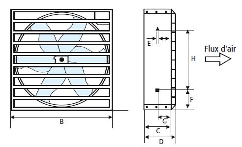- Etanchéité du volet assuré par de puissants ressorts lorsque le ventilateur est à l’arrêt.