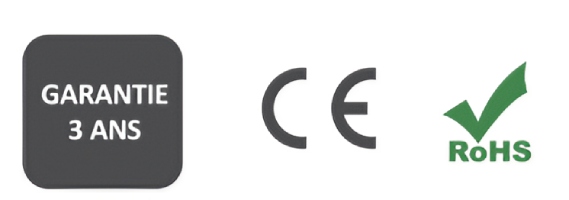 L'alimentation fonctionne sous une tension de 220-240V et le dispositif bénéficie d'une protection électrique IP23 et d'une classe 1.