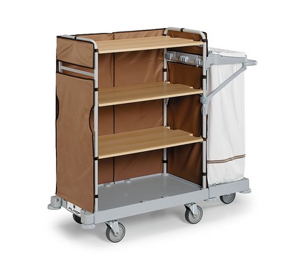 Chariot de service sobre et raffiné est adapté pour tous les environnements, particulièrement indiqué pour le ramassage, le transport et le rangement dans le milieu hôtelier.