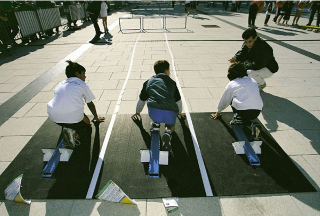 Cette piste de départ est conçue pour équiper une cour de récréation.