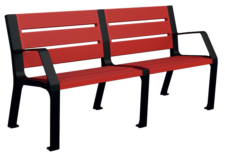 Réf. TC : 451341943Banc public plastique recyclable 2440 446 Rouge (RAL 3020) Avec accoudoirs 46
