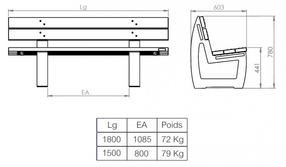 Bonjour, je suis membre du conseil syndical d"une copropriété à Bormes les Mimosas. Je suis en gestion d"un dossier sur l"aménagement d"un terrain de notre résidence en espace détente/lecture. Je souhaite y installer 3 bancs en plastique gris (1,50m de longueur) résistant aux embruns marins, sans entretien particulier, résistant à une utilisation intensive surtout pendant la période estivale où les locataires sont nombreux. Quel poids supporte ces bancs ? Vous serait il possible de m"envoyer un devis en urgence pour 3 bancs livrés et installés ? Je suis en Réunion avec le conseil syndical de copropriété les 24 et 25 avril et si je pouvais avoir ce devis avant ces dates par mail pour le présenter en réunion, ce serait super sympa. Un geste commercial serait il possible pour cette commande éventuelle de 3 unités ? Je vous remercie. Maryline LERICQUE Conseil syndical de copropriété Bormes les Mimosas