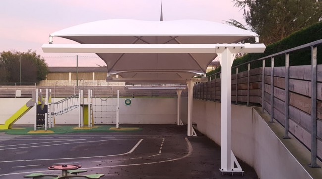 30/08/2022abri preau de 8m/8m pour école ossature métallique et toiture toile pvc
