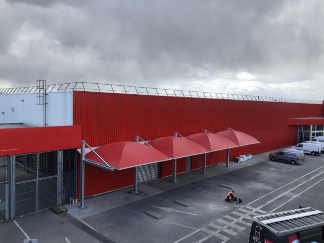 Pour un centre accueillant des enfants en situation d"handicape on a besoin d"un préau avec pied central(le moins encombrant possible) en 6m/8m + un abri avec pieds déportés en 3m50/3m50 pour abriter une balançoire. Cordialement.