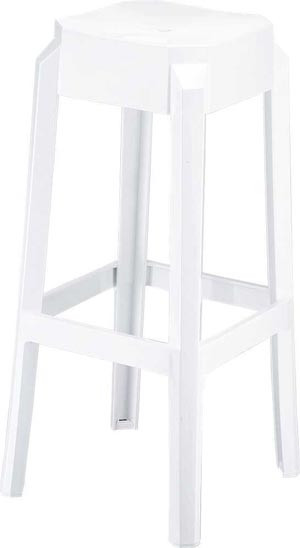 Polycarbonate Hauteur d'assise : 75 cm Dimensions : L.36 x l.36 x H.75 cm Coloris : transparent ou blanc Utilisation intérieure et extérieure