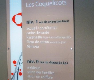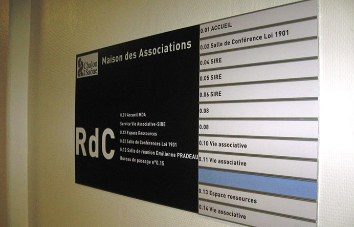 répertoire signalétique est un guide qui permet de repérer facilement une structure dans un établissement.