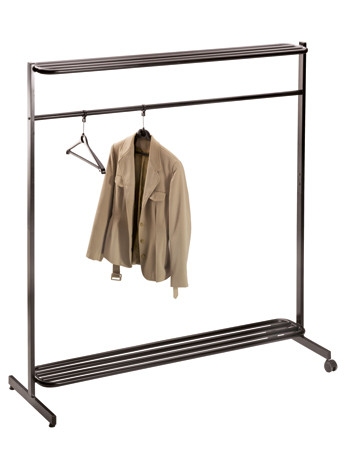 Grâce à sa traverse support cintres amovible en tube acier Ø 25 mm, notre vestiaire porte cintres propose un espace de rangement modulable et adaptable à toutes les situations.