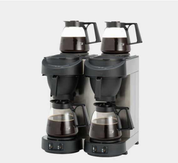 Cette machine à caféprofessionnel est munie de 4 verseuses en verre de 1,8 litres et 4 plaques de maintien en température autorégulées.