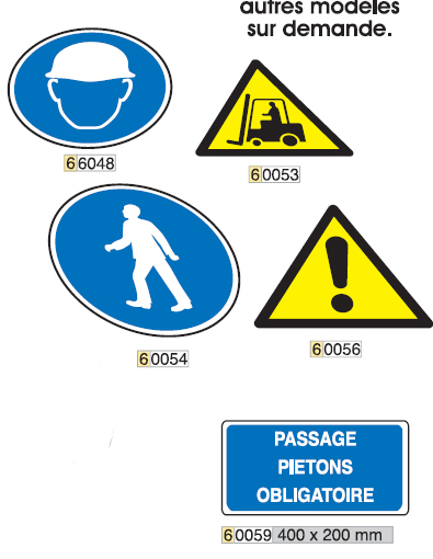 panneaux conçus pour la signalisation horizontale intérieure au sol (entrepôts, hangars...).