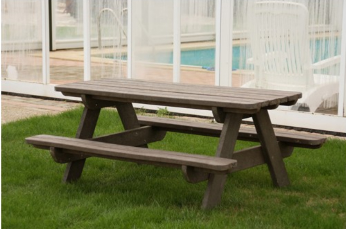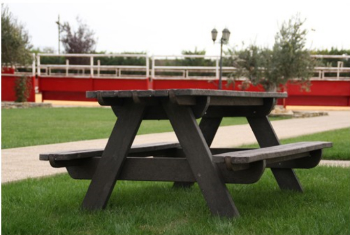 Cette table pique nique en plastique recyclé est un mobilier urbain dédié à un usage dans vos espaces verts.